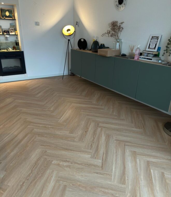 Deze mooie Visgraat vloer is de perfecte aanvulling op een prachtige woonkamer.