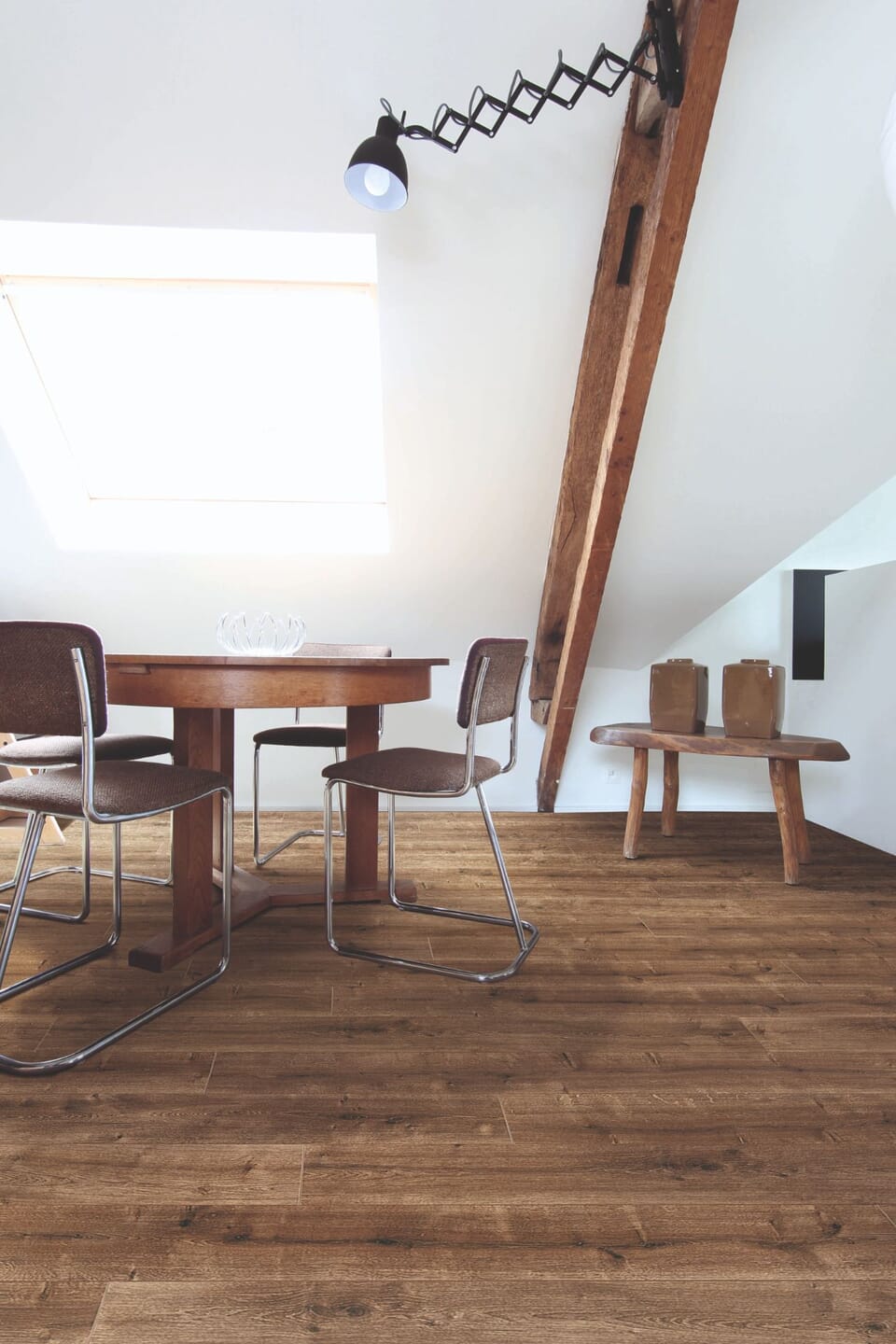 Dankzij het gebruiksvriendelijke kliksysteem verloopt het leggen soepel en netjes. De royale plankmaat van 126 cm lang en 24 cm breed geeft de vloer een natuurlijke, evenwichtige uitstraling. En omdat hij compatibel is met vloerverwarming en -koeling, blijft het comfort het hele jaar door prettig.