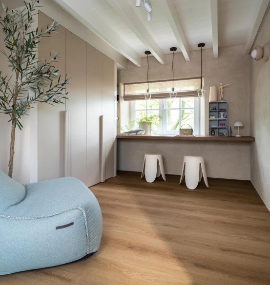 De charme van een houten uitstraling, zonder het gedoe: met SDS 54825 – PVC Plak XL kies je voor plak PVC met een natuurgetrouwe houtstructuur. Daardoor voelt de vloer tijdloos aan en sluit hij moeiteloos aan bij zowel strak modern als klassiek ingericht.