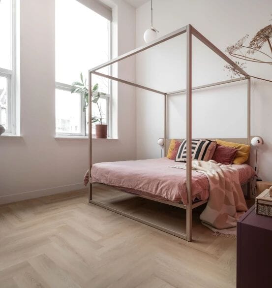 Zoek je een vloer die in meerdere ruimtes werkt? SDS 57820 – PVC Klik Visgraat XL is toepasbaar in onder andere de woonkamer, keuken, slaapkamer en zelfs de badkamer. De XL stroken van 73 × 14,6 cm geven het visgraatpatroon extra rust en een ruimtelijk effect. Daarbij is de vloer geschikt voor vloerverwarming en -koeling voor comfortabel wonen, het hele jaar door.